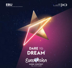 Eurovision verteidigt das "Greater Israel"-Logo - Ali Abunimah - 16. Mai 2019 - Ein Logo mit den Worten "Dare to Dream" und "Eurovision". Das offizielle Eurovisionslogo zeigt einen stilisierten Umriss des historischen Palästina - oder "Greater Israel" - einschließlich des besetzten Westjordanlandes und des Gazastreifens.