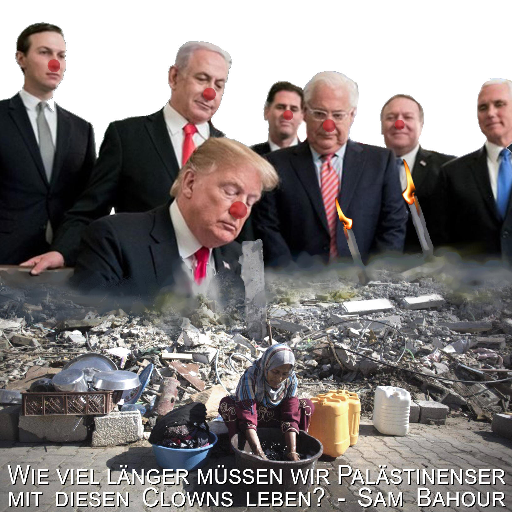Wie viel länger müssen wir Palästinenser mit diesen Clowns leben? - Sam Bahour - 10. Juni 2019 - Wenn Trumps unglücklicher „Deal des Jahrhunderts“ zur Erreichung des Friedens im Nahen Osten jemals existierte, hatte er keine Chance gegen die Fehler, die bei jedem seiner drei Architekten - Trumps Schwiegersohn Jared Kushner, seinem US-amerikanischen Insolvenzanwalt - auftraten. (...)
