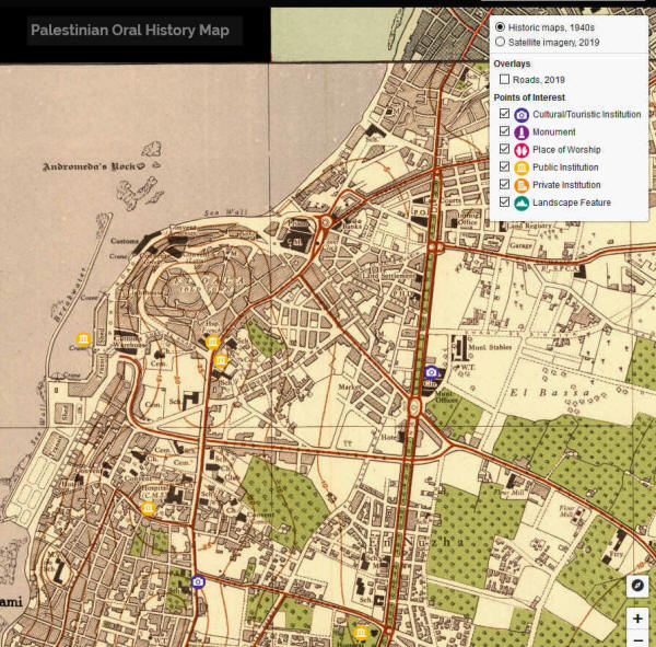Die Karte ermöglicht es, historische Karten von Palästina zu nutzen, um durch das palästinensische oral history Archiv (Poha) zu navigieren, eine neue Online-Plattform, die über 1000 Stunden mündliche Zeugnisse von Palästinensern enthält, die durch die Nakba gelebt haben, die den Alltag und die Kultur in Palästina vor 1948, sowie ihre Erfahrungen von Vertreibung und Exil.