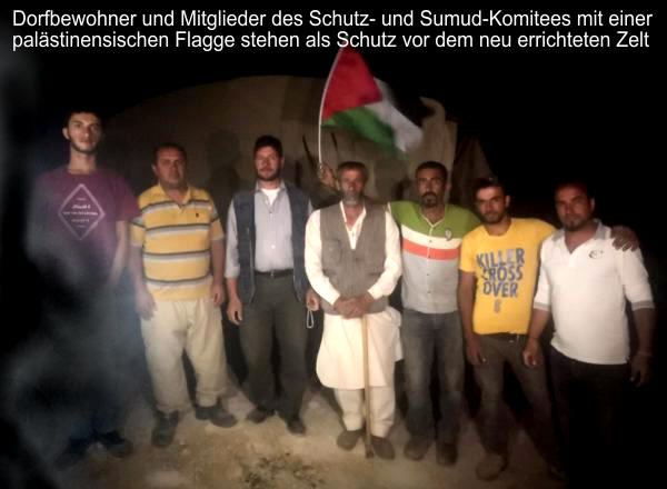 ISM schloss sich Aktivisten des Schutz- und Sumud-Komitees - einer Gruppe, die Einheimische vor Angriffen von Siedlern schützt - in das Dorf Khalet al Dabeh an, wo sie der Familie Dababsh halfen, ein Planenzelt aufzubauen.