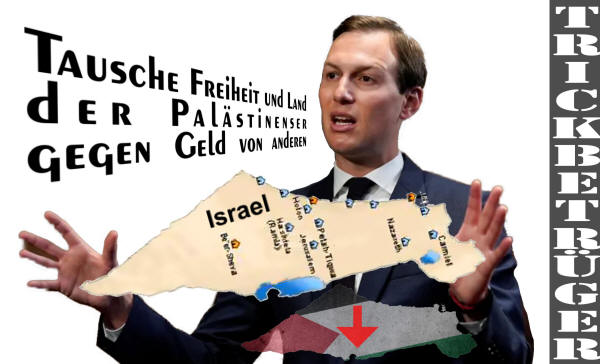 Nun sind die Palästinenser dran im „Deal“ der USA, Israels und „williger“ arabischer Staaten. Milliarden von Dollars sollen den Palästinensern in ihren von Mauer und Zäunen umgebenen Reservaten oder Bantustans das Leben ein wenig erleichtern, Investitionen das Niveau ihrer Wirtschaft heben (das von der Besatzungsmacht Israel ganz bewusst auf einen niedrigen Level gedrückt wird), und eine Brücke zwischen dem Gazastreifen und dem Westjordanland soll die Verbindung zwischen beiden von Israel beherrschten Gebieten verbessern – sozusagen von Gefängnis zu Gefängnis. Von Völkerrecht, Menschenrechten, Ende der Besatzung und Unterdrückung ist in dem Konzept mit keinem Wort die Rede. Und schon gar nicht von Land, genau gesagt von der Rückgabe von geraubtem Land oder dem Ende des täglichen Landraubs durch Israel für den Bau neuer Siedlungen.