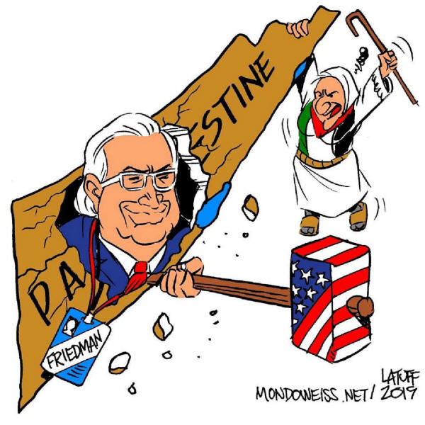 Warum gibt es so viele zionistische Juden in Trumps Nahost-Team? - Stellungnahme Philip Weiss am 4. Juli 2019 - 3. Juli 2019. - Zwei von Donald Trumps Nahost-Friedensverhandlern, Jason Greenblatt und David Friedman, nahmen am Sonntag an einer grotesken Feier der Ausgrabung religiöser Siedler in einem palästinensischen Viertel im besetzten Jerusalem teil, , und die Schlagzeile hat ein Thema aufgeworfen, das in den USA kaum zu diskutieren ist...: Warum gibt es so viele zionistische Juden in diesem Portfolio?