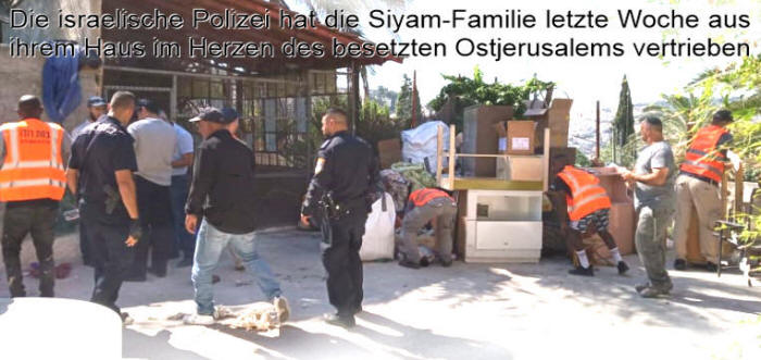 Wie der Goliath der Jerusalemer Siedlerbewegung die Welt überzeugt hat. Es ist wirklich David. - Jonathan Cook - 16. Juli 2019 - Die israelische Polizei hat die Siyam-Familie letzte Woche aus ihrem Haus im Herzen des besetzten Ostjerusalems vertrieben, dem letzten Kapitel ihres 25-jährigen Rechtsstreits gegen eine mächtige Siedlerorganisation. Die Niederlage der Familie war viel mehr als nur eine weitere Vertreibung. Sie sollte einen vernichtenden Schlag gegen die Hoffnungen von rund 20.000 Palästinensern landen, die im Schatten der Altstadtmauern und der Al-Aqsa-Moschee leben.
