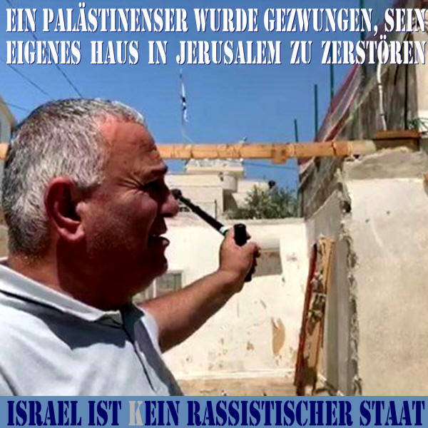 Ein Palästinenser wurde gezwungen, sein eigenes Haus in Jerusalem zu zerstören. - 5. September 2019 - Die israelischen Behörden in Jerusalem zwangen einen palästinensischen Hausbesitzer am Mittwoch, sein eigenes Haus mit nur Handwerkszeug abzureißen.