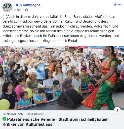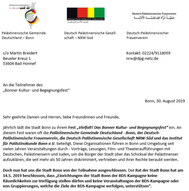 Palästinensische Vereine - Stadt Bonn schließt Israel-Kritiker von Kulturfest aus