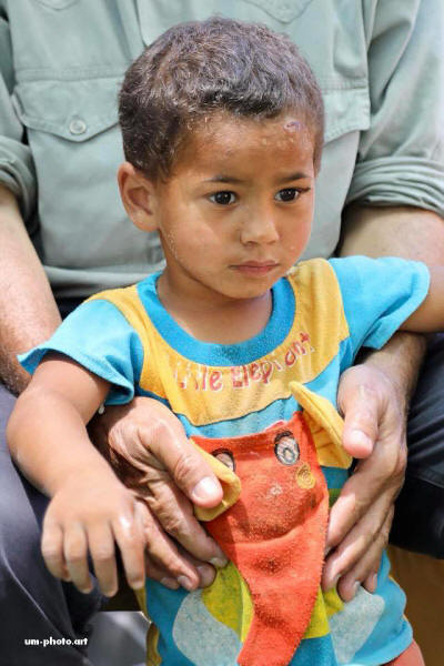 „Sharif verlässt nicht gern das Haus. Er schämt sich für seine Verletzung, er redet nicht viel mit Gleichaltrigen und bleibt immer lieber allein “, sagte sein Vater Wael. Kürzlich überredete Wael seinen Sohn, sich im Juli einem einmonatigen Sommercamp anzuschließen. Das Programm umfasste 55 Kinder, die entweder aufgrund angeborener Missbildungen oder Verletzungen ihre Gliedmaßen verloren. Wael sagte, dass sein Sohn mehrere Operationen für sein rechtes Auge und eine Operation zur Vorbereitung auf ein künstliches Glied benötigt. Wael sagte, Sharif “wurde nach dem Camp aktiver, aber es ist nicht genug. Er braucht viel Pflege und Zeit, um sich in der Gemeinschaft zu engagieren. “