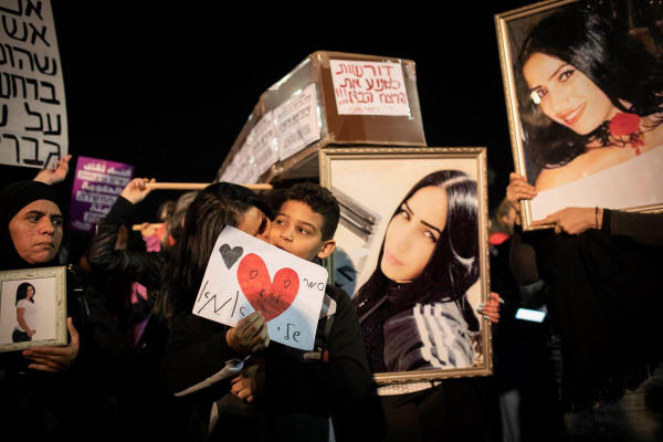Foto: Beim Frauenstreik erinnern Demonstrant*innen an der ermordeten Samar Khatib in Jaffa.