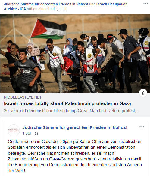 Seit Beginn des Großen Rückkehrmarsches am 30. März 2018 hat das IOF 324 Palästinenser, einschließlich Kinder, getötet und über 32.000 verletzt. Übersetzt mit DeepL.com Quelle