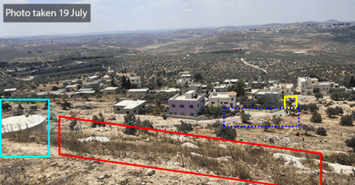 12. Juli Protest - Gegen 13:00 Uhr begannen die Demonstranten, nach Osten zu marschieren, vom Zentrum des Dorfes in Richtung der Straßensperre. Als sie den östlichen Rand des Dorfes erreichten, wurden sie von israelischen Besatzungsmächten auf dem Hang im Norden heftig angegriffen.