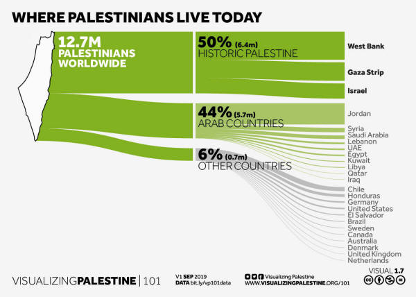 Trotz Jahrzehnten der israelischen / zionistischen Vertreibung leben rund 50 % der Palästinenser noch in ihrer historischen Heimat.