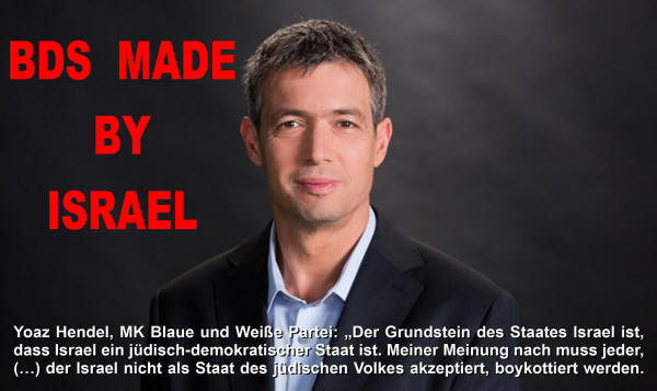 Yoaz Hendel, MK Blaue und Weiße Partei: „Der Grundstein des Staates Israel ist, dass Israel ein jüdisch-demokratischer Staat ist. Meiner Meinung nach muss jeder, (…) der Israel nicht als Staat des jüdischen Volkes akzeptiert, boykottiert werden. Daher wird die Arabische Gemeinsame Liste nicht Teil der Regierung sein. Deshalb werden wir nicht mit ihnen sitzen (…) Es gibt Knesset-Mitglieder, wie Ofer Cassif (Mitglied der Gemeinsamen Liste), die nicht in der Knesset sein dürften.“ (Israelischer Kanal am 28.09.)