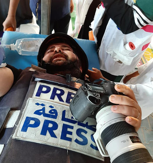 Gummigeschosswunde an seinem rechten Arm. Ahmed