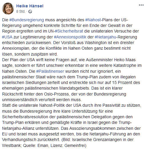 *Man kann die Standhaftigkeit der Palästinenser nur respektieren. Sie weigern sich zu buckeln. Sie fordern dringend „die Kirchen und Christen quer über den Globus auf, im Angesicht der Ungerechtigkeit gegenüber dem palästinensischen Volk aufzustehen und von ihren Ländern zu fordern, dass sie den sogenannten „Deal des Jahrhunderts“ kategorisch zurückweisen, wobei sie ständig wiederholen, dass weder Frieden noch Gerechtigkeit vorherrschen kann, wenn die Gerechtigkeit nicht vollzogen, die Okkupation beendet wird und wenn den Palästinensern nicht ihre vollen Rechte garantiert werden“.*