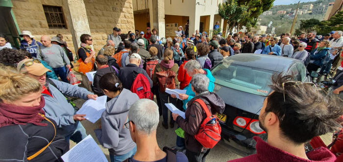 Heute haben wir 200 Freiwillige aus ganz Israel und der Welt zu uns ins Dorf Yassuf im Westjordanland gebracht, um Seite an Seite mit palästinensischen Bauern Bäume zu pflanzen, deren Haine und Bäume zuvor von lokalen extremistischen Siedlern verwüstet, in Brand gesetzt oder anderweitig zerstört wurden. Leider verweigerte uns die israelische Armee, die Aktivitäten wie geplant fortzusetzen, und behauptete, das Gebiet befinde sich in einer "geschlossenen Militärzone". Nach einer langen Verzögerung stellte sich heraus, dass der Befehl, den die Armee uns gezeigt hatte, nicht einmal gültig war. Obwohl es uns nicht möglich war, die Bäume auf dem Land der Bauern zu pflanzen, nahm die Gruppe an einer kleinen Zeremonie mit den Bauern in der Stadt teil, und die Bäume blieben natürlich bei den Bauern, die sie pflanzen werden.