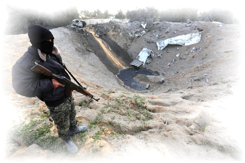 Ein Kämpfer des Islamischen Dschihad bewacht den Ort eines israelischen Luftangriffs in Khan Younis im südlichen Gaza-Streifen am 24. Februar.