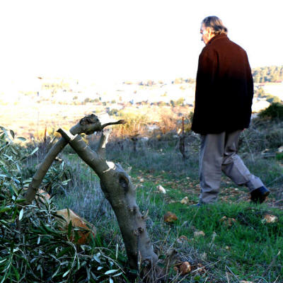 Adnan Salah, ein pensionierter Schulverwalter, der zum Landwirt geworden ist, erhielt am Donnerstagmorgen einen unerwarteten Anruf von seinen Nachbarn. Sie sagten ihm, er solle sofort auf sein Ackerland am Rande des Dorfes al-Khader in der besetzten Westbank kommen. "Als meine Neffen und ich ankamen, waren wir schockiert, als wir sahen, was vor uns lag", sagte Salah, 70, gegenüber Middle East Eye. Fünfzig seiner Olivenbäume, die er in den letzten 17 Jahren kultiviert hatte, waren gefällt worden, ihre Überreste vor ihm auf den Boden gestreut. "Dieses Land, diese Bäume, bedeuten mir so viel", sagte Salah. "Es ist, als hätte man ein Kind, das man jahrelang pflegt und aufzieht, nur um es sich dann von jemandem wegnehmen zu lassen.