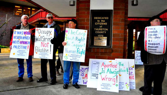 Im Jahr 2010 war die Olympia Food Co-op das erste Lebensmittelgeschäft in den USA, das im Rahmen der Boykott-, Veräußerungs- und Sanktionskampagne (BDS) für die Rechte der Palästinenser israelische Waren aus den Regalen nahm. "Als Mitangeklagter bin ich froh, aber nicht überrascht, dass die Gerichte wieder zu unseren Gunsten entschieden haben", sagte Grace Cox, ein ehemaliges Vorstandsmitglied von Co-op. Vorstandsmitglieder wie Cox, die eine Maßnahme zum Verbot israelischer Produkte aus den Regalen des Ladens unterstützten, wurden von mehreren ehemaligen Co-op-Mitgliedern, die eng mit der israelischen Interessenvertretung StandWithUs zusammenarbeiteten, jahrelang gerichtlich belangt.