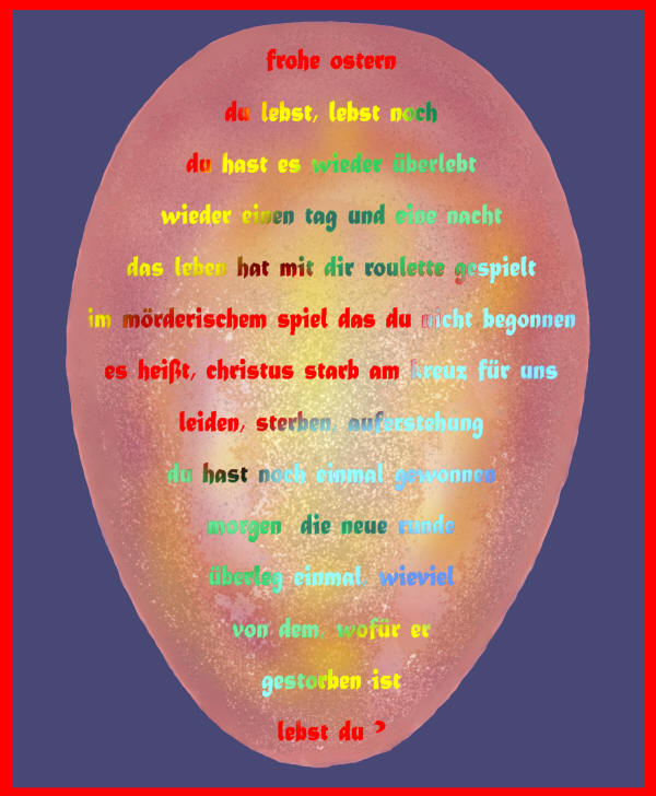 Wenn ich der Tausenden Palästinenser gedenke, die ihr Leben geopfert haben, um unsere Freiheit auf unserem Land zu sichern, wird mir klar, dass sie uns die wahre Bedeutung des Passahfestes gelehrt haben. Unser palästinensisches Passahfest wird gefeiert werden, wenn unser Exodus beendet ist, wir in das historische Palästina zurückkehren können und die Welt erkennt, dass sie eine Lösung des Konflikts akzeptieren muss, die alle einschließt - einschließlich der Hunderttausenden verstreuten, vertriebenen Flüchtlinge.