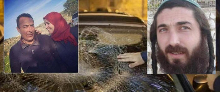 getroffen wurde, den jüdische Siedler durch die Windschutzscheibe