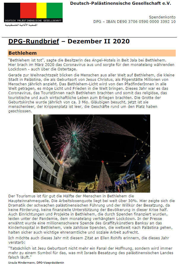 palästinensischer Einrichtungen, der Angriffe auf christliche