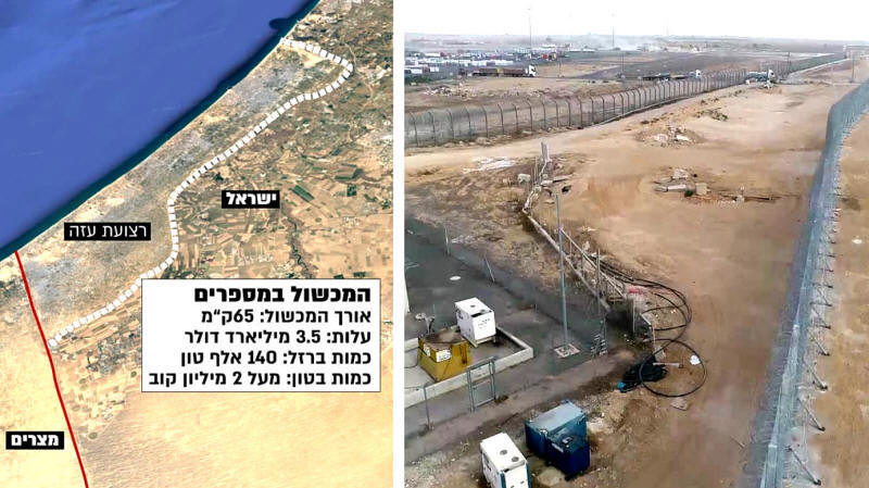 Die Anlage an Israels Grenze zum Gaza-Streifen ist 65 Kilometer lang. Über der Oberfläche handelt es sich nur in einem kleinen Abschnitt um eine Mauer mit Wachtürmen. Überwiegend besteht die nun nach rund dreieinhalb Jahren fertig gestellte Sperranlage über der Erde aus einem mehrere Meter hohen Zaun mit Sicherheitsstreifen.