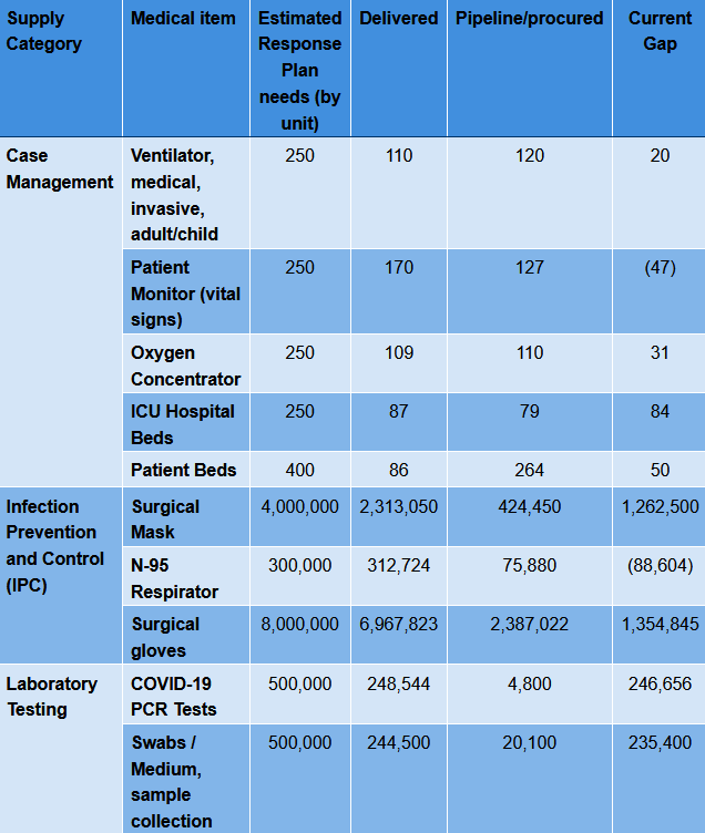 medizinische COVID-19-Ausrüstung und -Verbrauchsmaterialien an