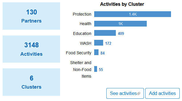 Liste der Aktivitäten nach Clustern sowohl im Gazastreifen als