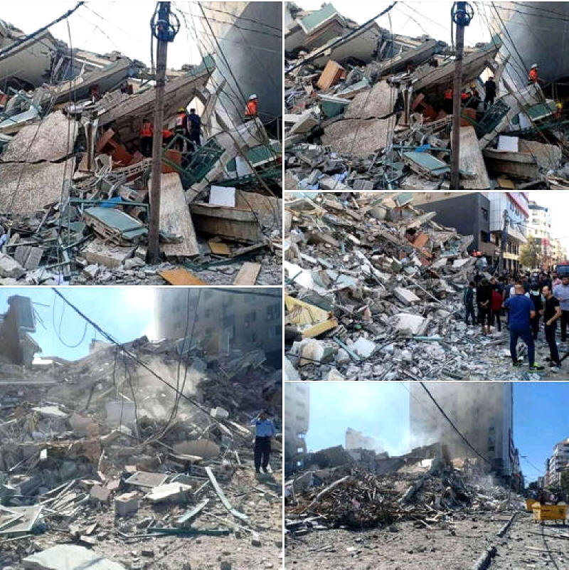 Fotos: So sieht das al-Jala-Gebäude, das mehrere internationale Medien und Kanäle im #Gazastreifen beherbergte, nach der Bombardierung durch #Israelische Kriegsflugzeuge aus.