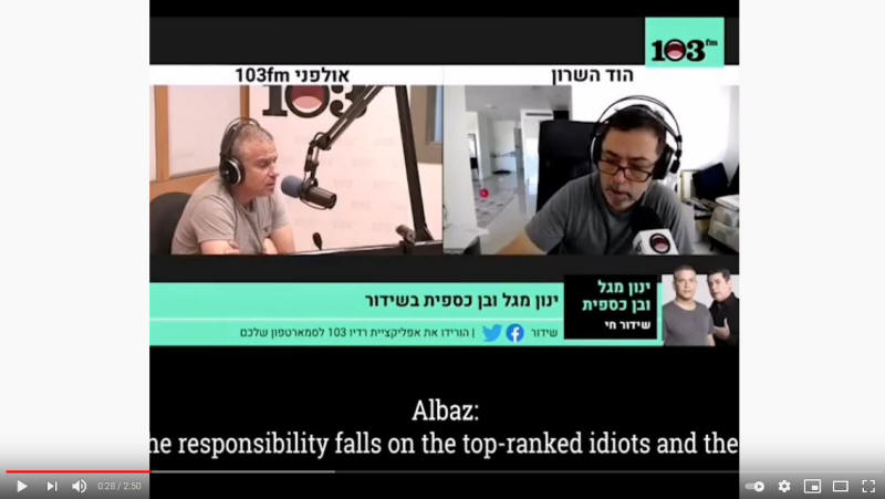 Auf die Frage eines palästinensischen Gastes, der am 13. Mai in ihrer Radiosendung anrief, ob es den israelischen Juden erlaubt sei, "uns abzuschlachten", antwortete der Moderator Yinon Magal: "Ja, so wird es enden, korrekt." Der Gast war Scheich Yusef al-Bazz, der Imam der Stadt, der erklärte, warum palästinensische Jugendliche auf die Straße gegangen waren, um in Solidarität mit ihrem Volk in Jerusalem und Gaza zu protestieren. Er argumentierte, dass die Verantwortung für jegliche Ausschreitungen bei der israelischen Regierung liege. "Ihr habt vergessen, welche Macht die Juden in Israel haben", rief Magal ins Mikrofon. Magals Co-Moderator Ben Caspit machte ähnliche Drohungen. Er sagte al-Bazz, dass "Sie einen Fehler machen, den Sie 1947-48 gemacht haben".