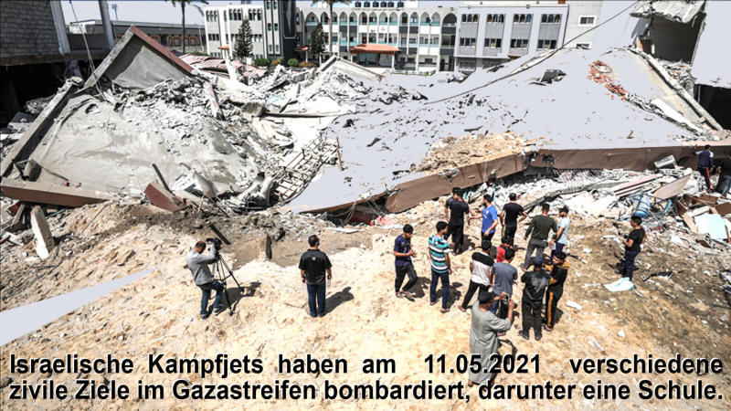Der Anrufer sagte nicht Yahya, sondern benutzte den bekannten Spitznamen des Hamas-Führers. Ähnliche Mitteilungen erhielten andere Bewohner im nördlichen Teil der Rimal-Nachbarschaft in Gaza City zwischen der Lalbidi- und der Falastin-Straße. Der Anruf kam am Sonntag vor einer Woche um etwa 3 Uhr nachmittags (Anmerkung der Übersetzerin: Datum unsicher) 10 Minuten später läutete das Telefon wieder. Der Anrufer erklärte Bilal, er solle zu Sinwars Büro hinüberschauen. Bilal weigerte sich. Was denn, wenn er es tat und gerade dann die Rakete einschlug? Das geschah einigen Leuten, sagten sie in Gaza. Der Anrufer rief wieder an und fragte Bilal, was in bestimmten Geschäften im Nachbarhaus vor sich ging. Er antwortete, er wisse das nicht, und sagt, der Anrufer hätte ihm gesagt, er würde verantwortlich sein für die Ergebnisse. Bilal bemühte sich nicht, auf diesen väterlichen Rat zu reagieren, der von einem Militaristen geäußert worden war, als die Erde erzitterte unter dem Geräusch der Drohnen und dem Krachen von Explosionen nah und fern, nicht zu erwähnen dem Lärm der Kampfflugzeuge oben. Bilal, Onkel und Tante verließen die Wohnung eiligst und rannten zum Haus seiner Eltern, das sich in der gleichen Nachbarschaft aber etwas weiter weg von den Büros von „Abu Ibrahim“ war. Sie ließen alles liegen und nahmen nur ihre Pässe, ihre Identitätskarten, ihre COVID-19-Impfbestätigungen und das bisschen Geld, das sie hatten, mit. Am nächsten Tag, zu Mittag an diesem vergangenen Montag, kündete der Sprecher des Informationsbüros der Hamas in Gaza an, dass die israelische Armee einer in Gaza arbeitenden UNO-Agentur angekündet hatte, dass sie zwei Regierungsschulen – Al Buraq und Al-Aqsa - beschießen würde, die mitten in der gleichen nördlichen Rimal-Nachbarschaft liegen. Die beiden Schulen sind sehr nahe dem Hochhaus mit 15 Wohnungen, wo die Familie von Bilal wohnt, und in dem 15 Familien leben. Die offizielle Ankündigung verbreitete sich wie ein Flächenbrand.