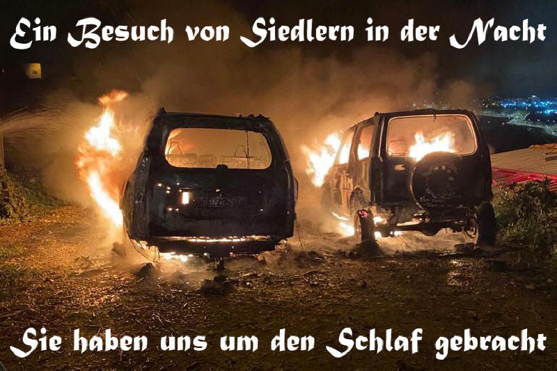 Letzte Nacht zündeten israelische Siedler vom illegalen Außenposten Havat Ma'on Heuballen im palästinensischen Dorf Tuba in den südlichen Hebron-Hügeln an.