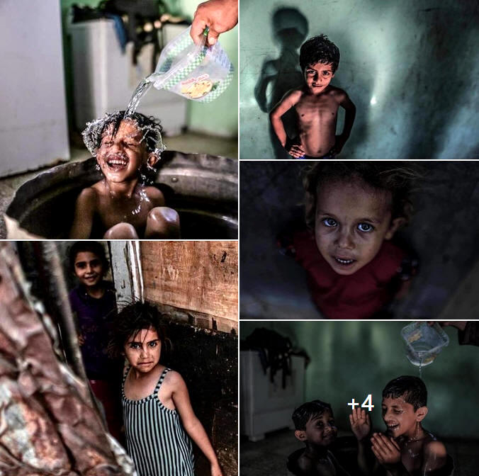 Angesichts der Stromausfälle versuchen die Kinder des Flüchtlingslagers in Khan Yunis im südlichen Gazastreifen, die hohen Temperaturen zu besiegen