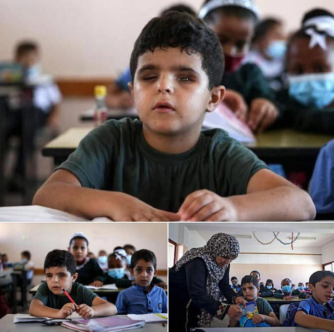 Der Schüler Mohammad Shaaban verlor während der israelischen Aggression gegen den #Gazastreifen im vergangenen Mai sein Augenlicht.