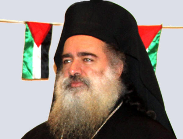 "Wir beabsichtigen, in der Geburtskirche besondere Gebete für unsere Märtyrer zu verrichten", erklärte er am 10. Oktober 2001, als er sich christlichen und muslimischen Führern bei ihrem Marsch von Jerusalem nach Bethlehem anschloss, um Israels Angriffe auf palästinensische religiöse Stätten anzufechten.