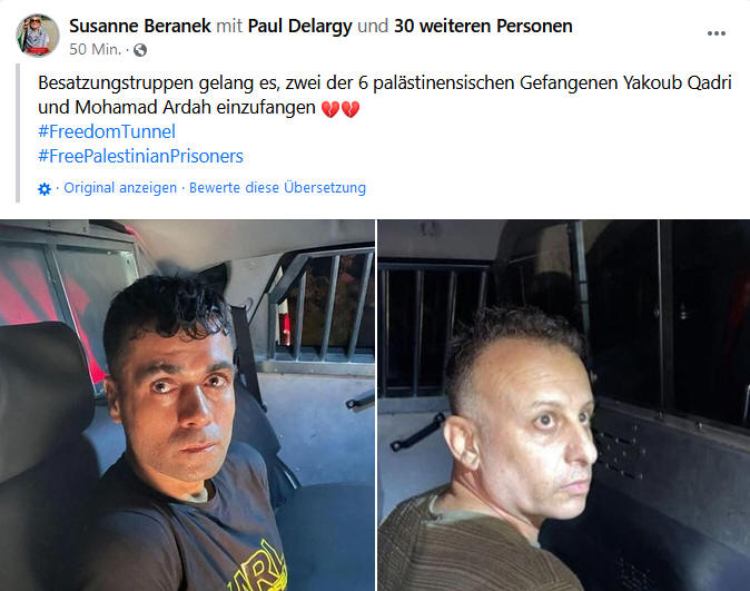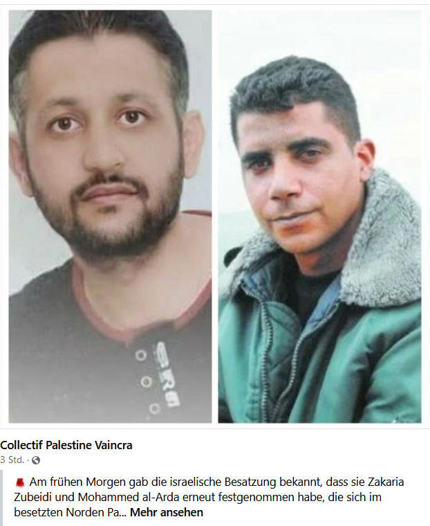 In Ramallah, Al-Chalil (Hebron) und Bethlehem wurde ebenfalls aus Solidarität mit den sechs Palästinensern, die sich weiterhin auf der Flucht befinden, demonstriert. mehr >>> |