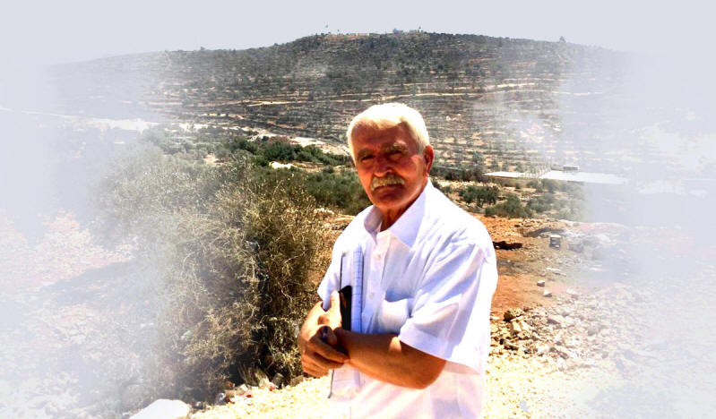 Mohammed Habisa vor der Kulisse des Eviatar-Postens auf dem Dschabal Sabih. Sein Land dort ist für ihn unerreichbar.