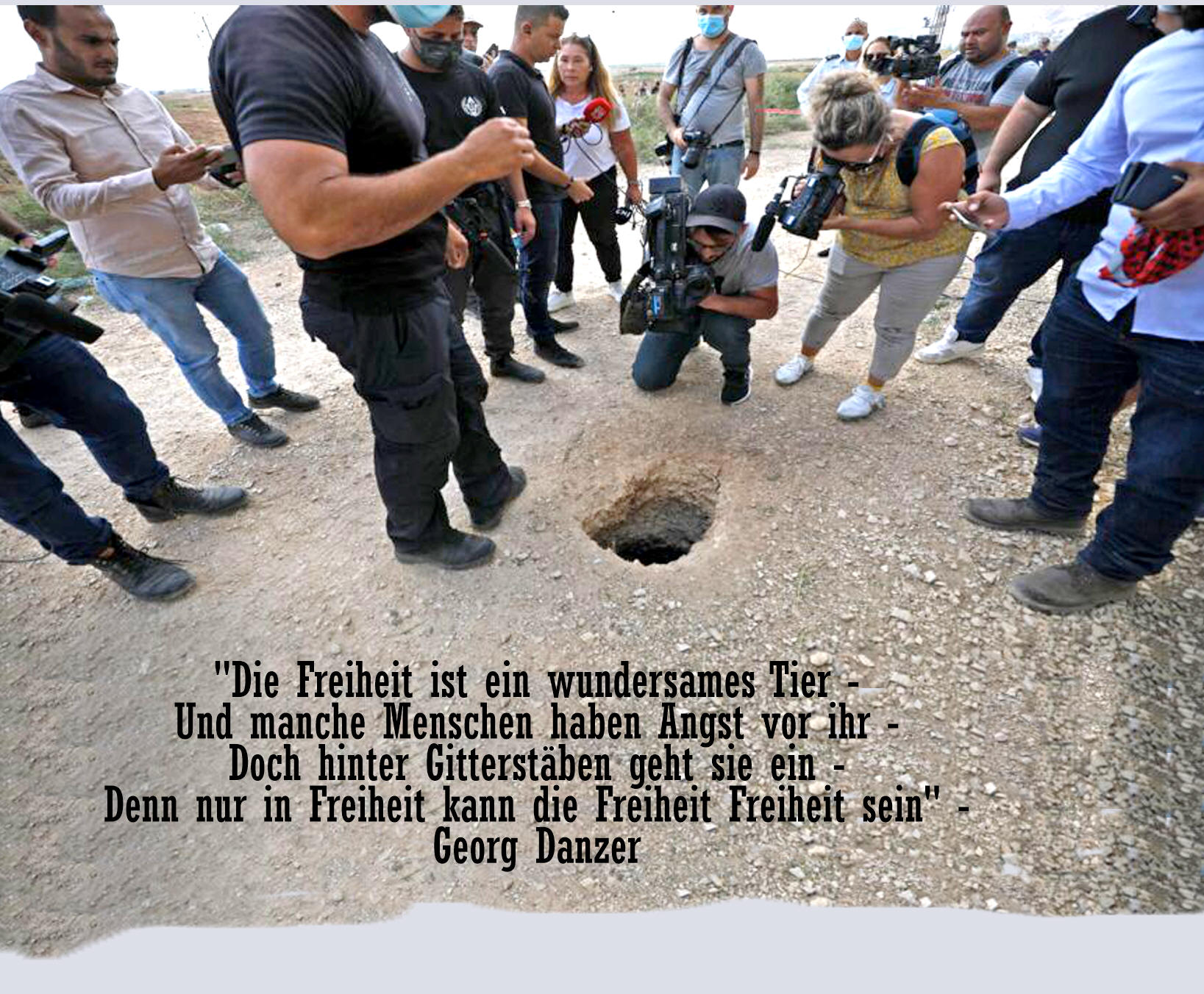 Während Israel beschäftigt ist mit Brutalitäten in den Besetzten Palästinensischen Gebieten (opt = Occupied Palestinian Territories), planten sechs mutige Gefangene ihre Flucht aus der Gefangenschaft. Israelische Sicherheits- und Geheimdienste sind nun für eine ganze Woche damit beschäftigt, was Zeitungsberichte als ‚die größte Menschenjagd‘ in der Geschichte des Besatzungsstaates bezeichnen: die Suche nach diesen sechs Palästinensern, die Israel schlecht ausschauen ließen.