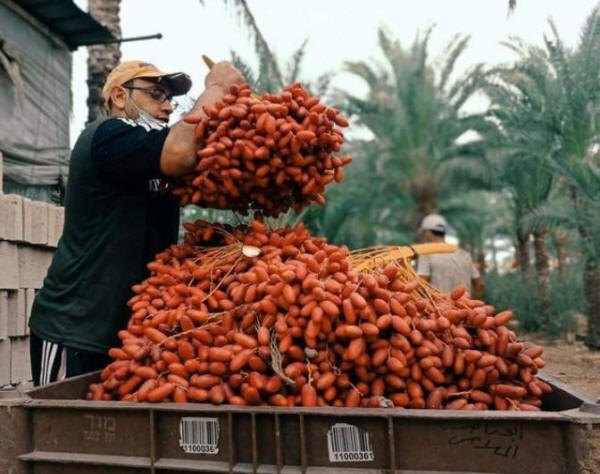 Ein palästinensischer Mann erntet rote Datteln in Deir al-Balah City im zentralen Gazastreifen.