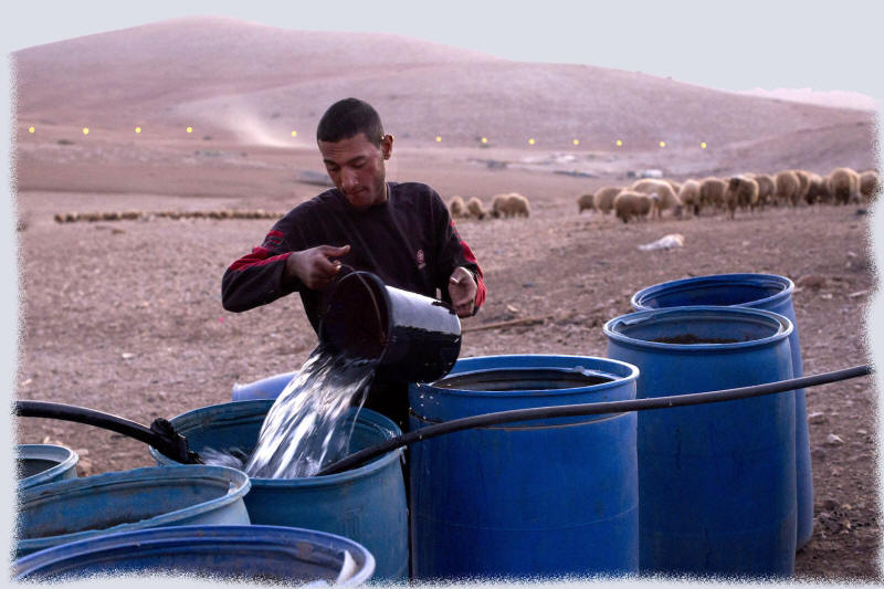 Oft beschlagnahmt oder zerstört die Armee die Behälter, so dass ganze Familien für lange Zeit ohne einen Tropfen Wasser dastehen, wie in den Weilern Khirbet Humsa oder Ras a-Tin in der größten Sommerhitze im Juli. Wenn sich Palästinenser dazu entschließen, ihr Wasser von der Palästinensischen Autonomiebehörde zu kaufen, zerstört die Armee manchmal ihre Wasserleitungen.