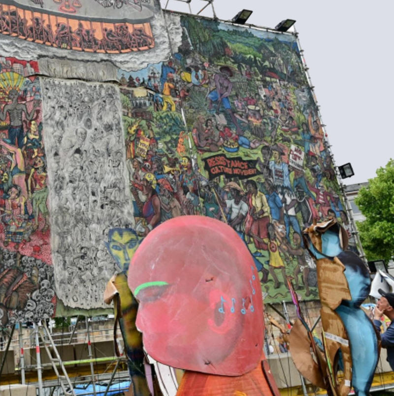 An den Eröffnungstagen ging das Konzept auf: Überall standen Menschen entspannt zusammen, lagen in der Sonne, freuten sich über den positiven Vibe, der die Ausstellung durchzieht – obwohl viele Werke auch Krieg, Unterdrückung, ökologische Katastrophe und Kolonialismus zum Thema haben.