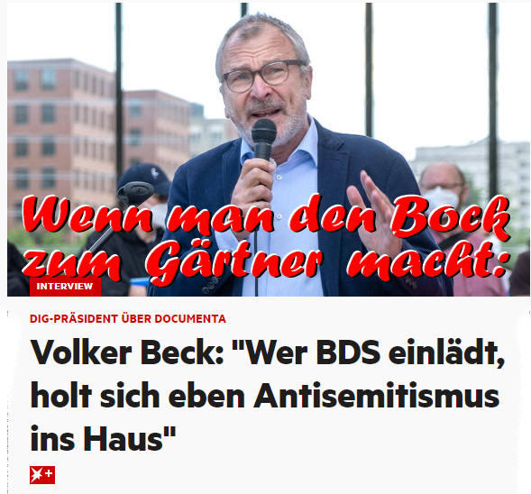 Wenn deutsche Politiker und Publizisten anlässlich der Documenta lautstark beklagen, dass Israel von der Ausstellung ausgeschlossen und das Antisemitismus sowie die Leugnung von Israels Existenz sei (Bundespräsident Steinmeier), dann ist das nur ein neuer Beleg für die Antisemitismus-Hysterie, die in Deutschland inzwischen herrscht. Demnächst wird es auch antisemitisch sein, wenn in einer Fußball-Bundesliga-Mannschaft oder in einem Theaterensemble nicht ein Jude oder Israeli vertreten ist.