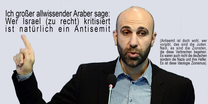 Ahmad Mansour ist ein in Deutschland lebende Palästinenser, der keine Expertise für Antsemitismus hat, eine "Firma" aber gründete ("Mind-Prevention"