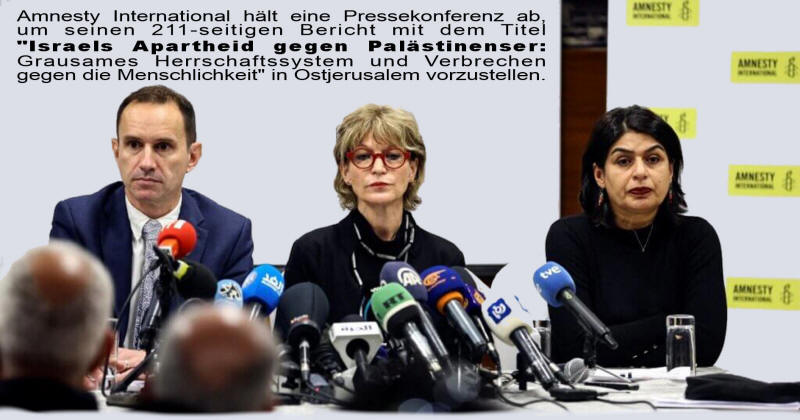 Amnesty International hat seinen lang erwarteten Bericht über die israelische Apartheid veröffentlicht. Amnesty ist nicht die erste Menschenrechtsorganisation, die das allen Palästinensern auferlegte System der Apartheid anerkennt. Der jüngste Bericht untersucht jedoch bewusst, wie sich die Apartheid auf das Leben der Palästinenser auswirkt, unabhängig davon, wo sie sich aufhalten, einschließlich der Palästinenser in den Gebieten von 1948 und der palästinensischen Flüchtlinge im Exil.