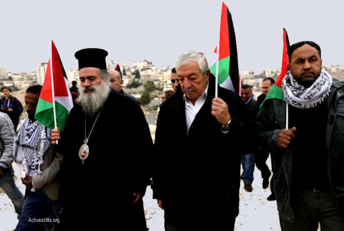 Erzbischof Atallah Hanna von der griechisch-orthodoxen Kirche nimmt an einem Protest im Westjordanland teil. (Foto: Oren Ziv, über Activestills.org)