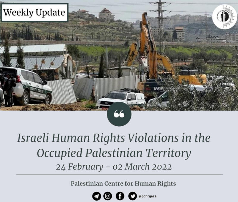 Palästinensisches Zentrum für Menschenrechte: Israelische Menschenrechtsverletzungen in den besetzten palästinensischen Gebieten - Wöchentliches Update (24. Februar - 02. März 2022).
