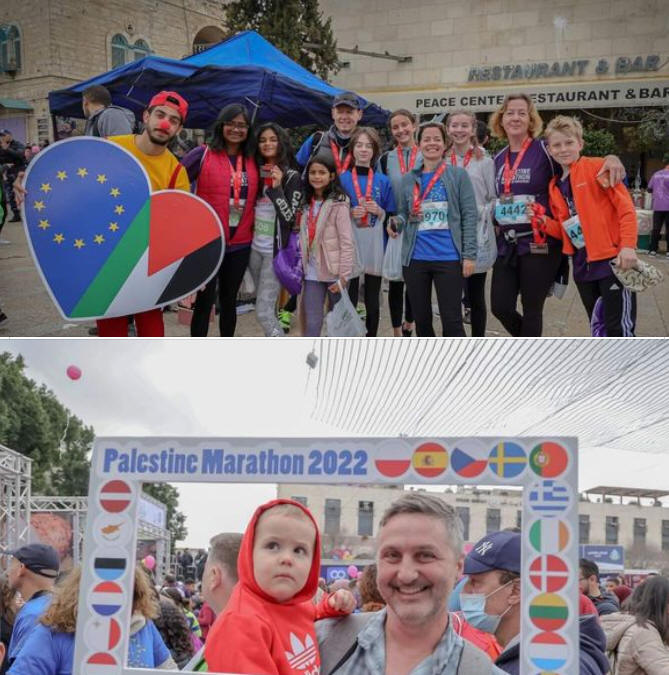 Über 500 Teilnehmer aus Europa und Palästina schlossen sich gestern Tausenden von Palästinensern an, die beim Palästina-Marathon in Bethlehem liefen. Es ist das dritte Mal, dass ein europäisches Team am Marathon teilnimmt und damit seine Solidarität mit der palästinensischen Sache und seine aktive Unterstützung für die grundlegenden Menschenrechte der Palästinenser, einschließlich des Rechts, sich in ihrem eigenen Land zu bewegen, unter Beweis stellt.