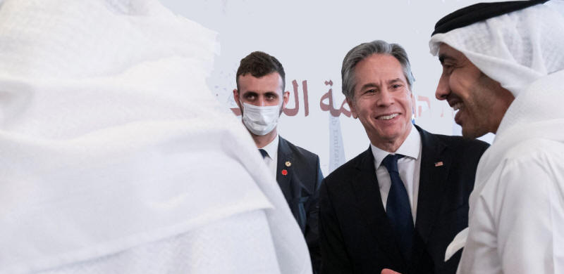 „Wenn Staatssekretär Antony Blinken die Heuchelei herausheben hätte wollen, dass so viele nicht-westliche Nationen in Präsident Bidens Bemühungen, die russische Invasion der Ukraine als eine globale ‚Schlacht zwischen Demokratie und Autokratie‘ darstellen hätte wollen, hätte er nichts Besseres auswählen können, als heute am Treffen des Middle East Ministers‘ Meeting in Israel teilzunehmen.
