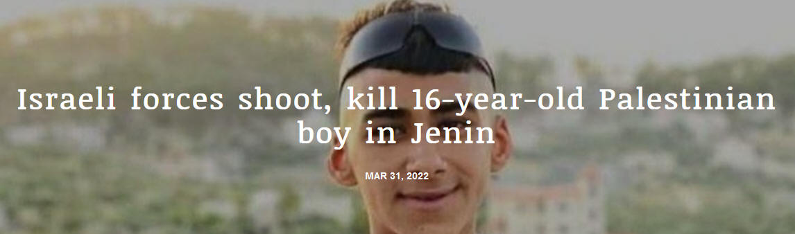 Israels Streitkräfte schießen und töten 16jährigen Palästinenser in Jenin