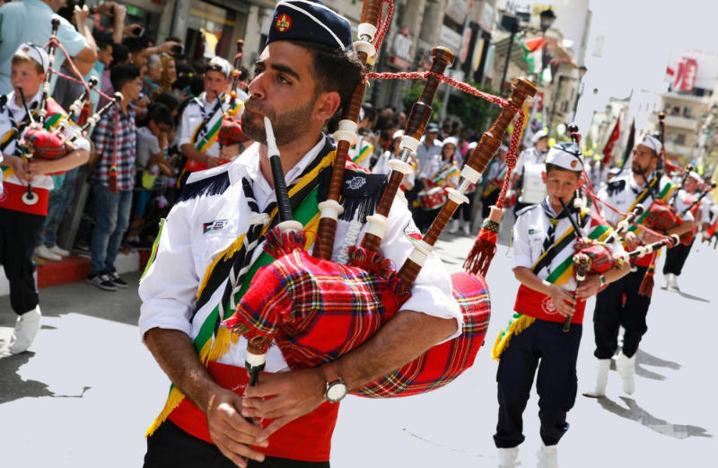 RAMALLAH, Besetztes Westjordanland - Trommelwirbel, laute Dudelsäcke und schrille Trompeten erfüllten am Samstag die Luft in Ramallah, als 14 lebhafte Kashaf (Pfadfinder) vor Tausenden von christlichen und muslimischen Palästinensern aufmarschierten. Die Zuschauer säumten die Straßen schon in den heißesten Stunden des Tages, um an der traditionellen Sabt al-Nour-Parade anlässlich des orthodoxen Osterfestes teilzunehmen. Zum ersten Mal seit Jahren war unter den 14 Pfadfindergruppen eine aus dem Gazastreifen.