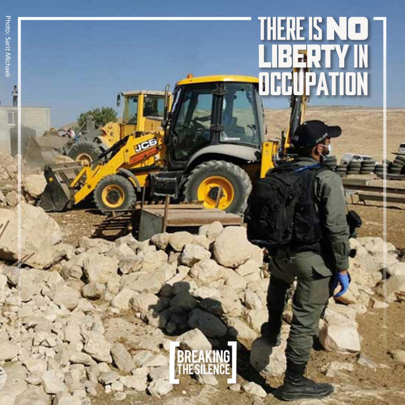 [In diesem Fall] kamen wir nach Um al-Kheir, es war ein unangenehmer Abriss. Der Scheich des Dorfes lag dort vor dem Traktor. Wir mussten die Grenzpolizisten dazu bringen, ihn wegzuziehen, und es wurde geflucht und geschrieen.